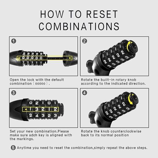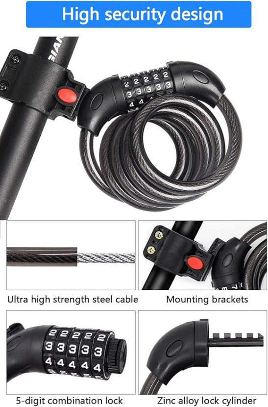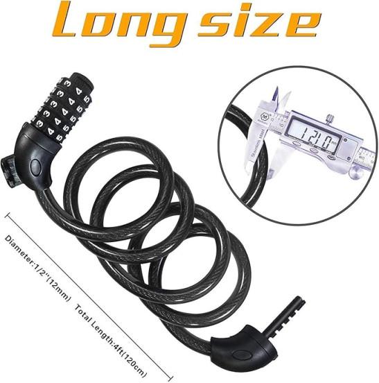 REHKITTZ Bike Lock Bicycle Locker Combination 5 Digit 120cm/12mm Long Cycle Cable Locks Bikes Chain High Security