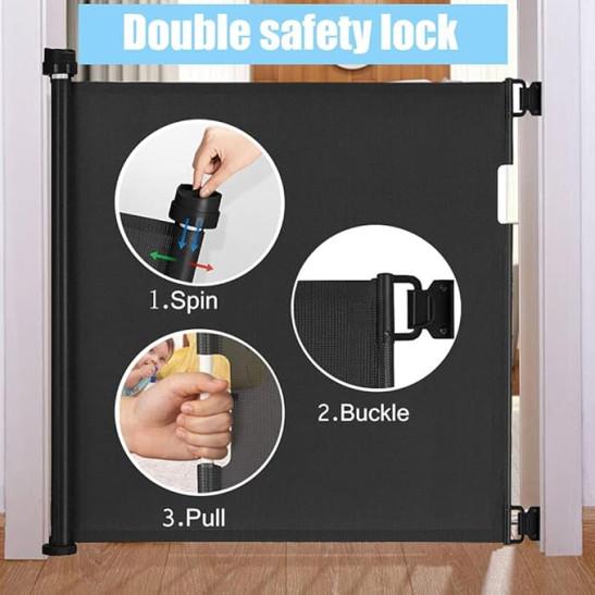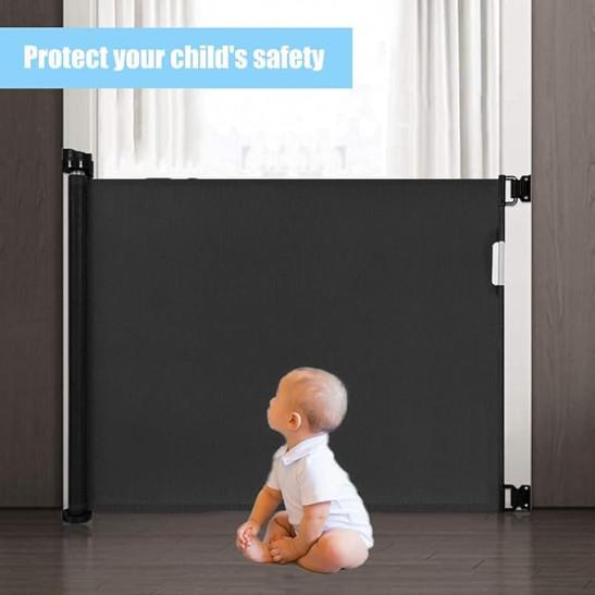 Retractable Baby Safety Gate Narrow to Extra Wide Metal Gate for Kids and Pets Extensions Baby Fence Pet Enclosure Simply Close Portable Folding Door Stair Hallways