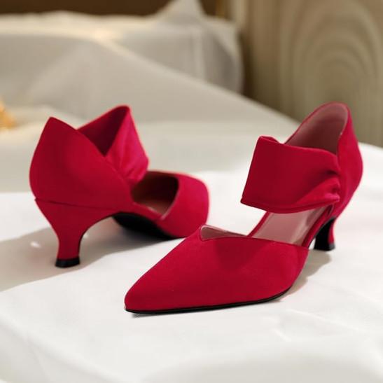 RIBONGZ Kitten Heels for Women Closed Toe Comfortable Low Heels Pointed Toe Sexy Slip on Pumps Bridal Party Dressy Shoes
