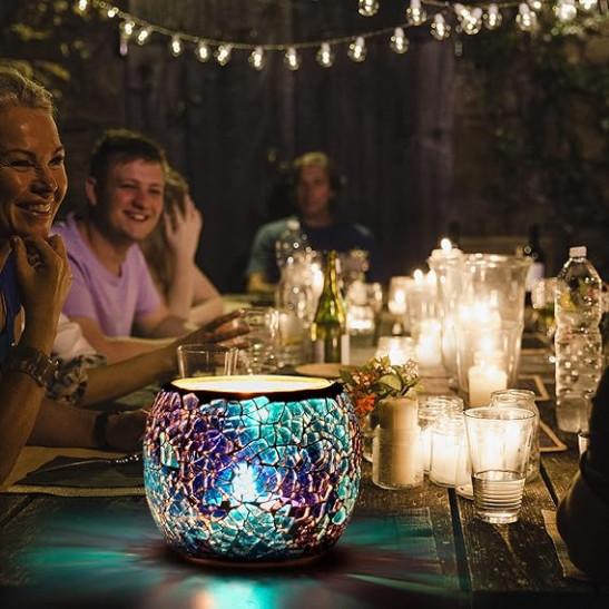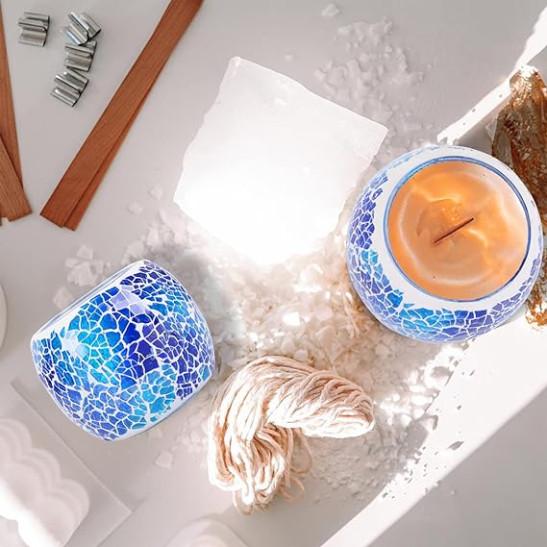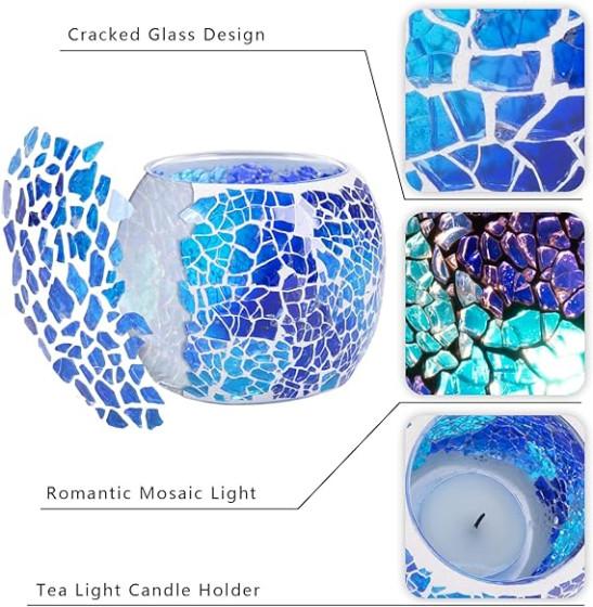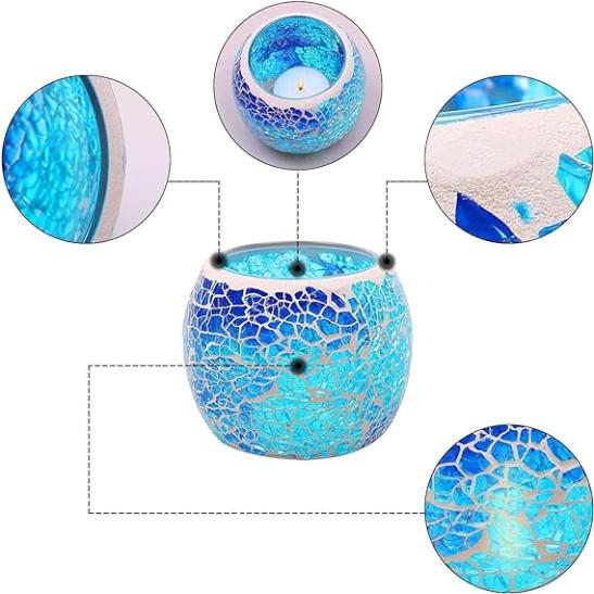 Romantic Larcenciel Mosaic Glass Candle Holder/Tea Light Holder/Vase/Pen Holder for Home Decoration Wedding Party (Blue)