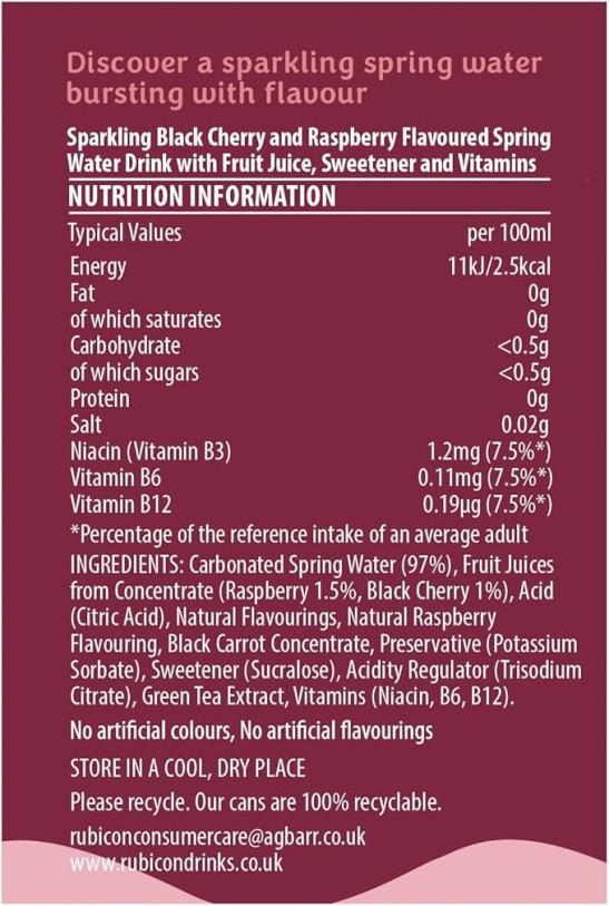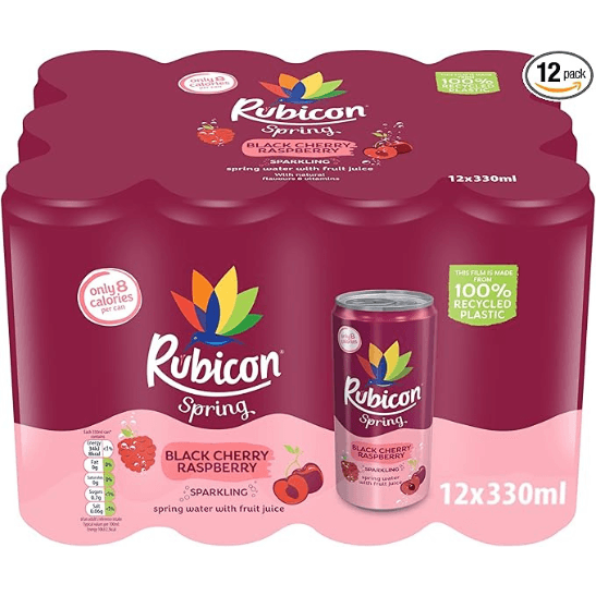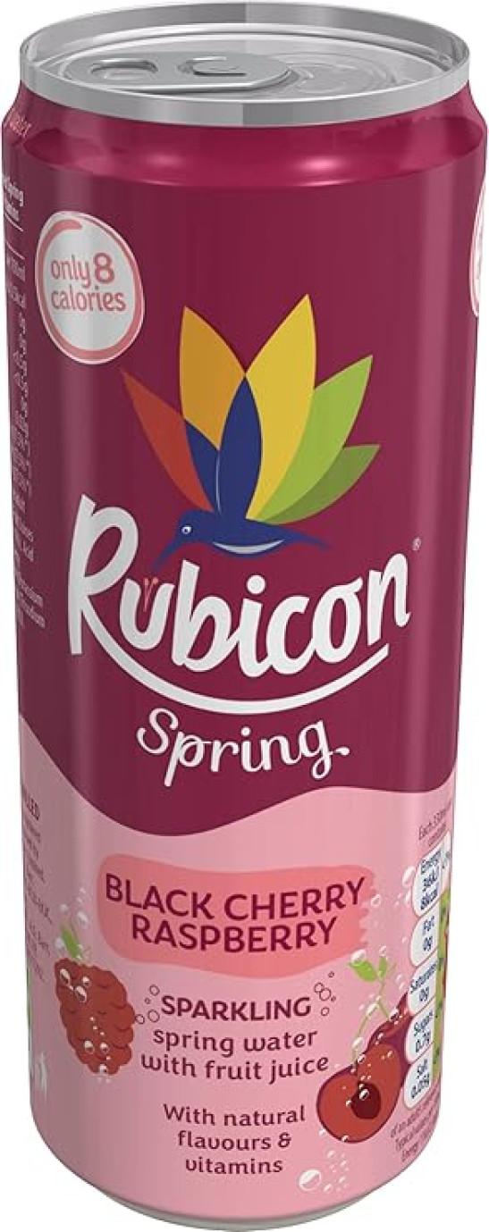 Rubicon Spring 12 Pack Black Cherry Raspberry, Sparkling Spring Water with Real Fruit Juice & Natural Flavours- 12 x 330ml Multipack Cans