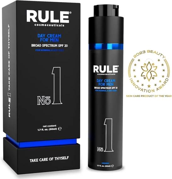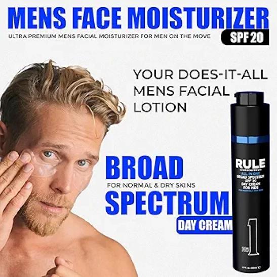 RULE 10-in-1 Mens Face Moisturizer with SPF 20 - Anti Aging Face Cream for Men - Collagen, Licorice Extract, Vitamin B, C, E Anti Wrinkle Men's Face Lotion Day Cream, Normal/Dry Facial Skin Care 1.7oz
