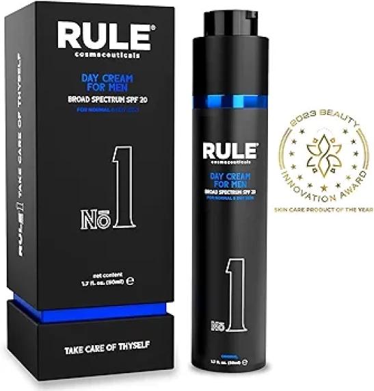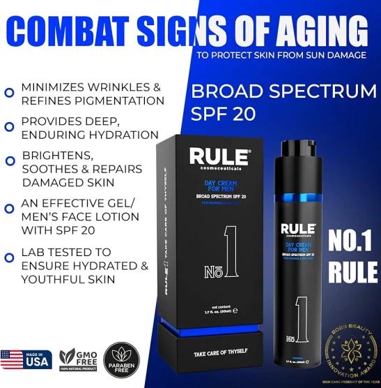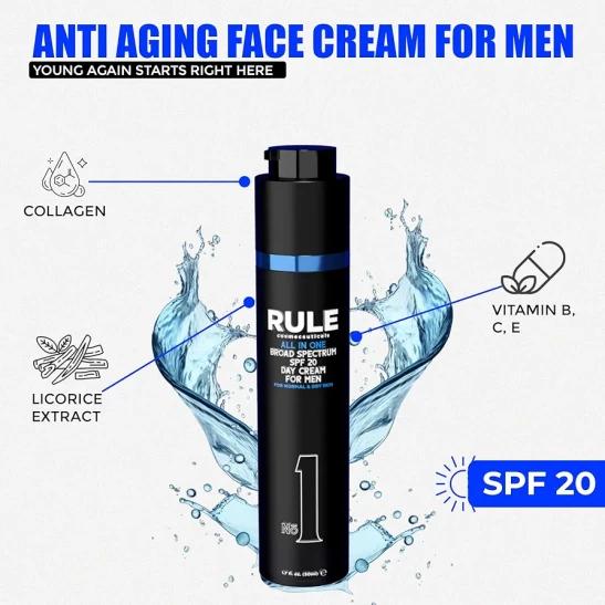 RULE 10-in-1 Mens Face Moisturizer with SPF 20 - Anti Aging Face Cream for Men - Collagen, Licorice Extract, Vitamin B, C, E Anti Wrinkle Men's Face Lotion Day Cream, Normal/Dry Facial Skin Care 1.7oz