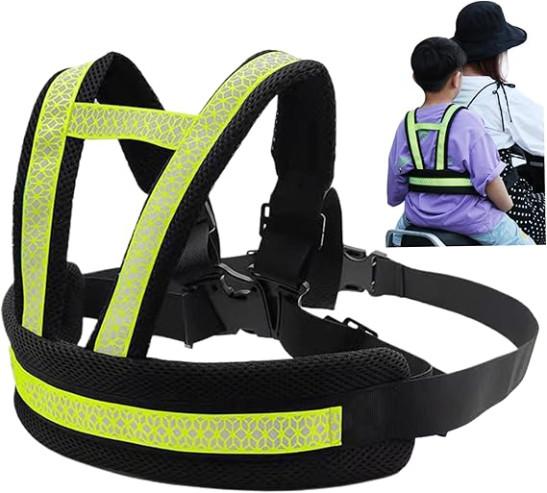 Safety Harness for Kids Breathable Adjustable Strap Kids Motorcycle Harness with Handles Reflective Ride Safer Travel Vest with Buckle Suitable for 2-12 Kids Green