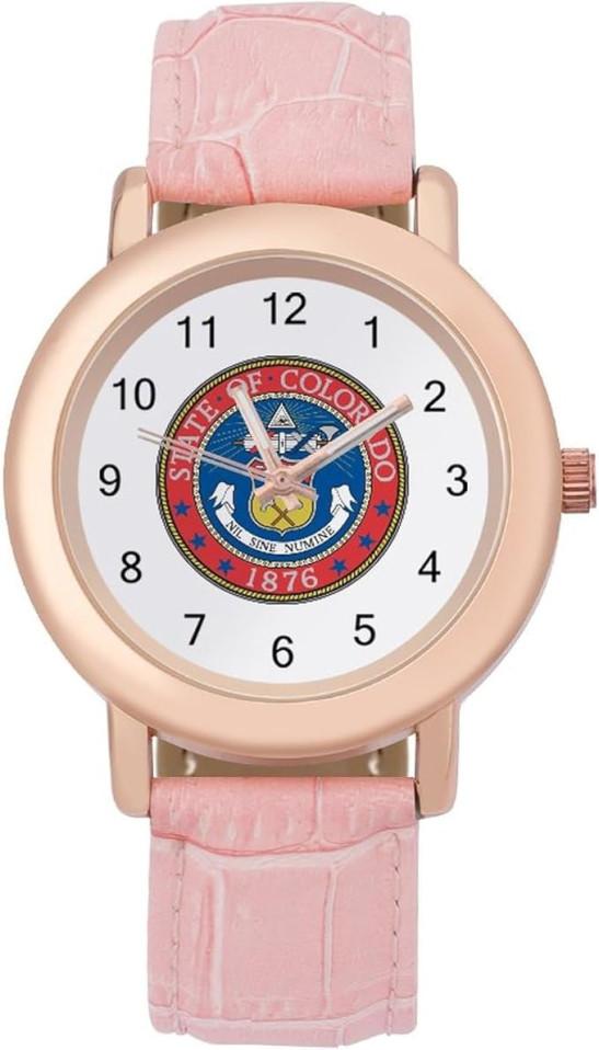 Seal of Colorado Fashion Watch For Women Easy Reader Novelty Round Watches Slim Quartz Casual Dress Wrist Watch Pink
