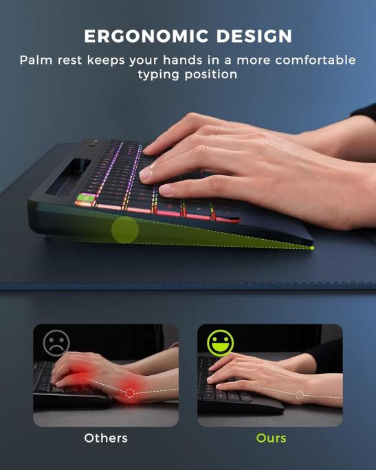 seenda 2.4G Wireless Keyboard and Mouse Combo with Rainbow Backlit, Rechargeable Keyboard and Mice Set UK Layout Full Size with 2 in 1 USB C & USB A Dongle and Wirst Rest, Black