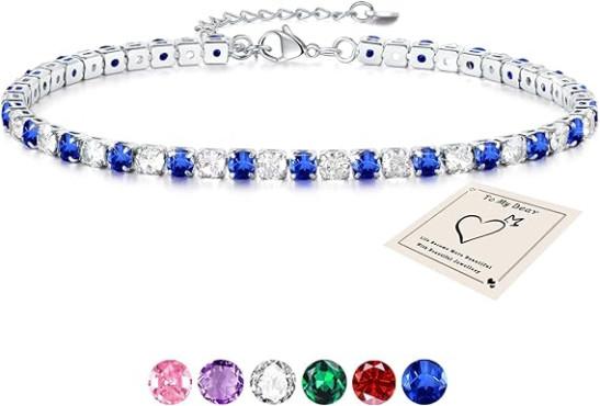 Sfoni Ankle Bracelet for Women, Adjustable Slider Bracelet Anklet with Cubic Zirconia Summer Ankle Chain Anniversary Birthday Graduation Jewellery Gifts for Teen Girls, with Gift Card & Box