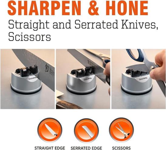SHARPAL 191H Kitchen Chef Knife and Scissors Sharpener for Straight and Serrated Knives, 3-Stage Knife Sharpening Tool Helps Repair and Restore Blades
