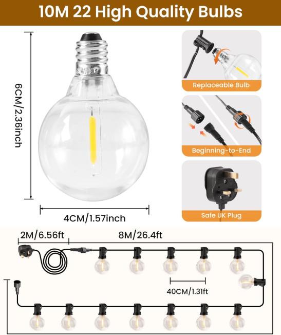 Shatterproof Waterproof Outside Lights, Warm White String Lights for Garden