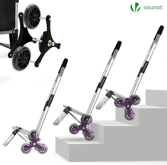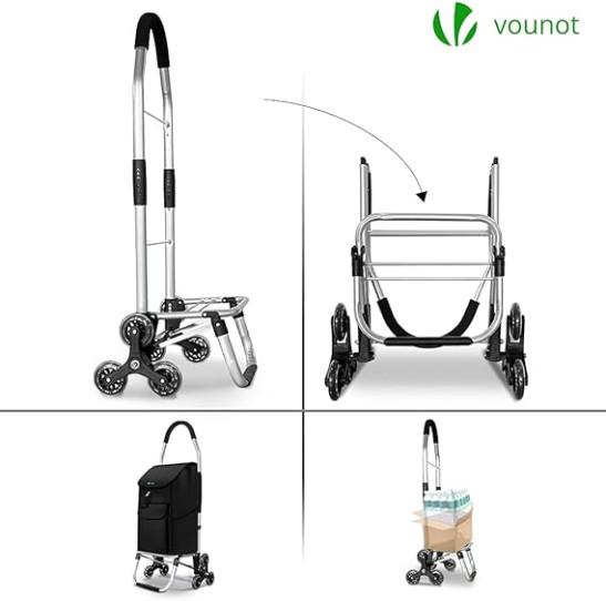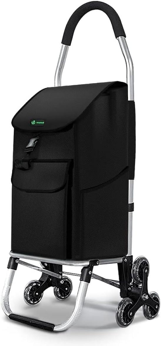 Shopping Trolley on 6 Wheels, Aluminium Lightweight Shopping Cart with Detachable Bag, Stair Climbing Grocery Trolley, 45L, Black