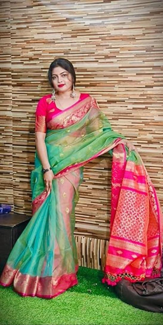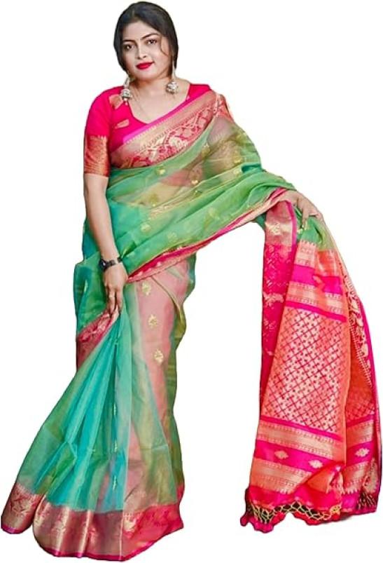 Shri Balaji Silk & Cotton Saree Emporium Indian Women Muslin Jamdani Bengal Festival Sari & Blouse Muslim Saare 967L