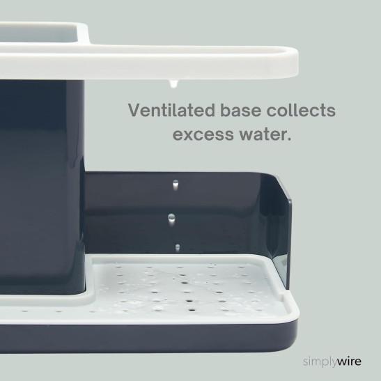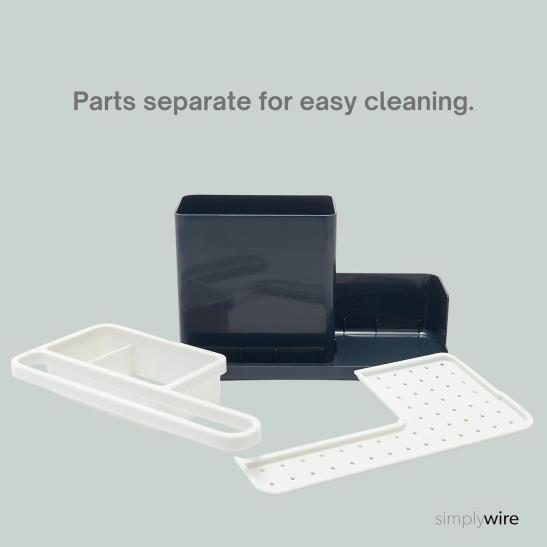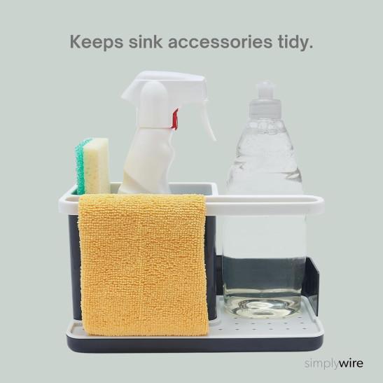 Simplywire – Sink Tidy/Caddy – Kitchen Sink Organizer – Removable Drip Tray – Non-Slip - Grey & White