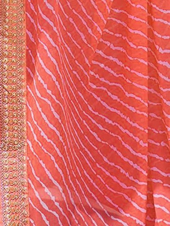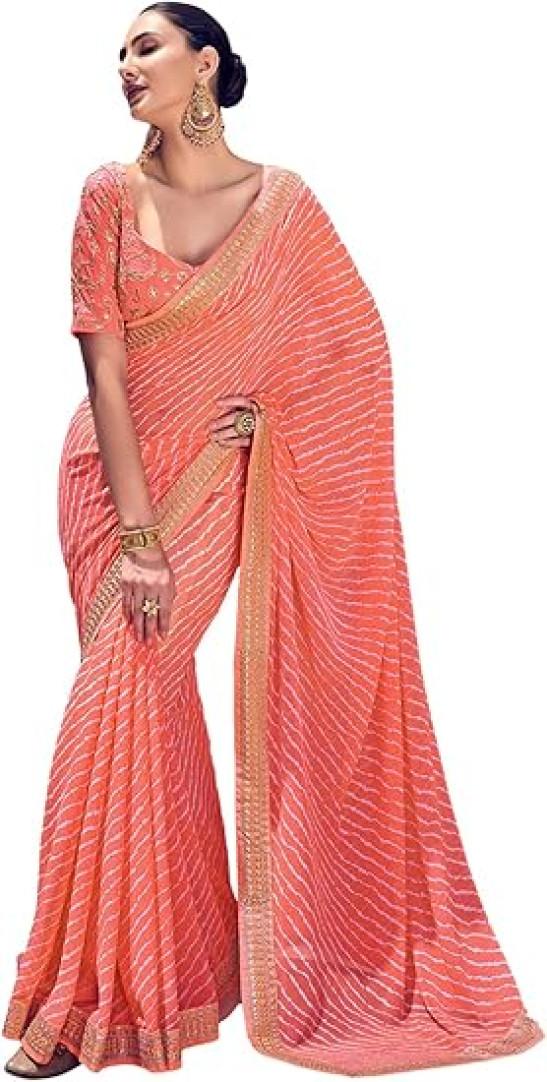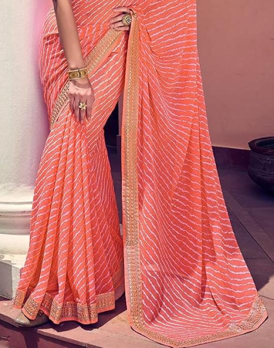 SIRIL Women's Bandhani Printed Embroidery Lace Georgette Saree