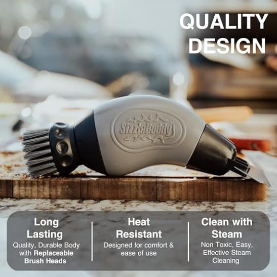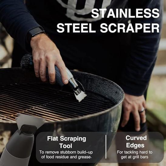 Sizzle Buddy BBQ Brush with Scraper - Stainless Steel BBQ Cleaning Brush - Safe, Durable, Heatproof Bristles - Easily Removes Grease & Food - No Scratch Cleaning Accessory