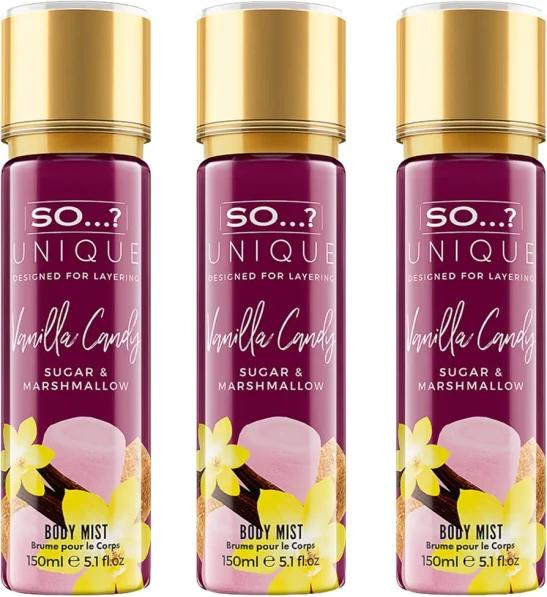 So…? Unique Womens Vanilla Candy Vegan Body Mist Fragrance Spray 150ml (Pack of 3)