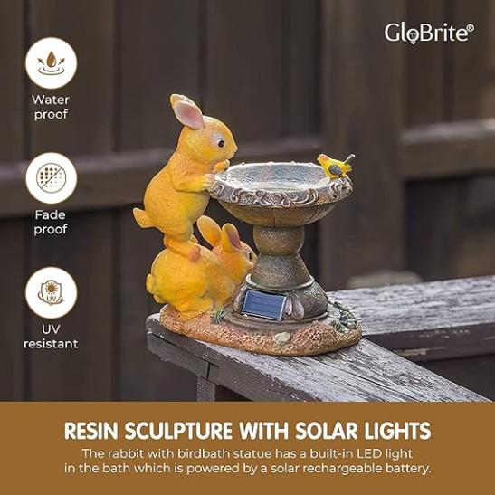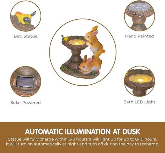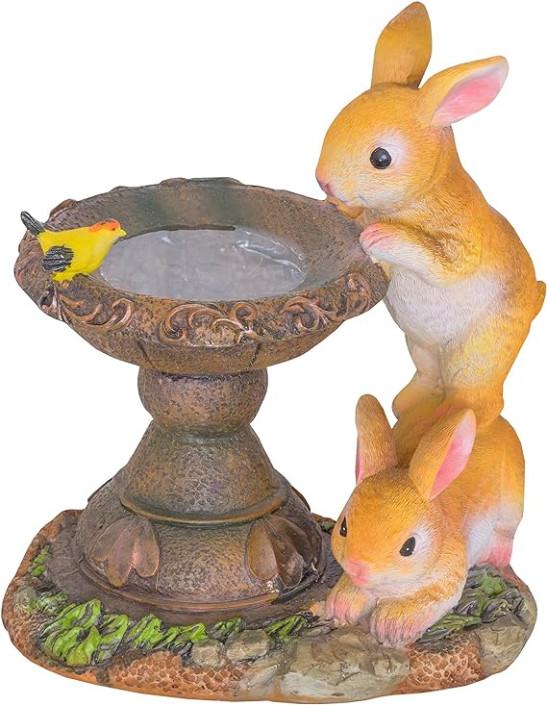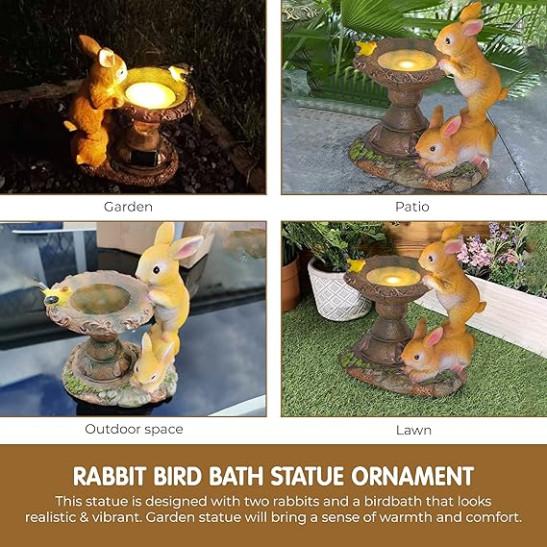 Solar Rabbit Bird Bath for Garden,Garden Ornament for Christmas Decorations & Home Decor