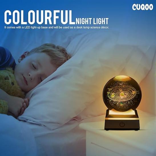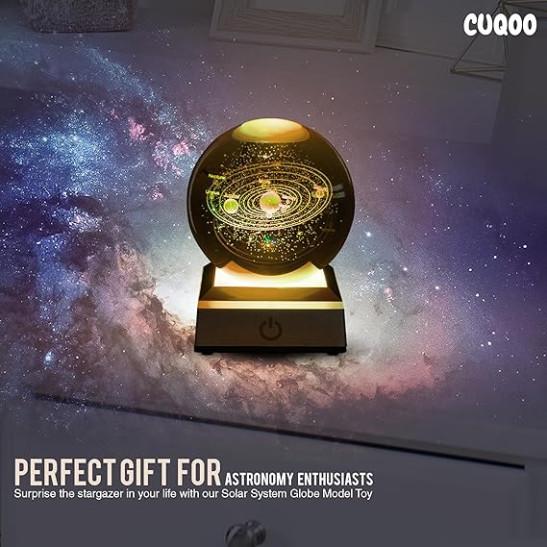 Solar System Crystal Ball with LED Colourful Lighting – 8cm Planets Model Decor Science Astronomy Gift | Engraved Universe Planet Sphere Easter Home Decorations for Children