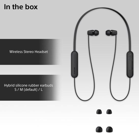 Sony WI-C100 Wireless In-ear Headphones - Up to 25 hours of battery life - Water resistant -Built-in mic for phone calls - Voice Assistant compatible - Reliable Bluetooth® connection - Black