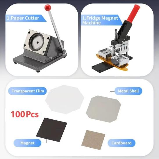 Square Refrigerator Magnet Machine, 50 * 50 mm Fridge Magnet Button Badge Making, with Cutter and 1000 Magnet Parts, DIY Magnet Badge Press Machine, for Home Photos 63.5 * 63.5MM