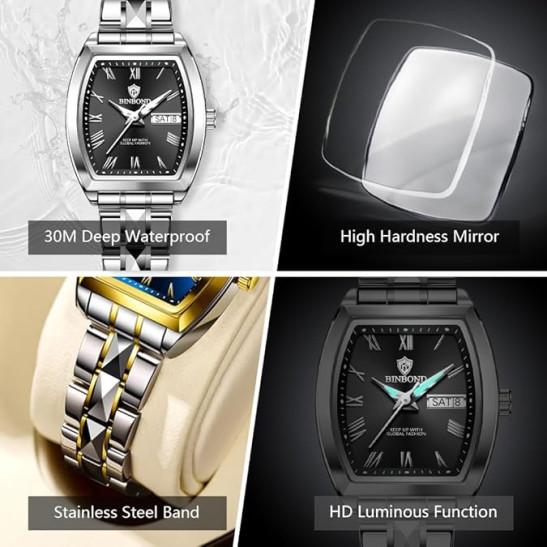 Square Womens Watch Fashion Luxury Elegant Dress Stainless Steel Ladies Wrist Watches for Female Day Date Waterproof Luminous