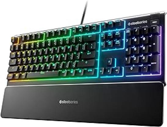 SteelSeries Apex 3 RGB Gaming Keyboard – 10-Zone RGB Illumination – IP32 Water Resistant – Premium Magnetic Wrist Rest (Whisper Quiet Gaming Switch)