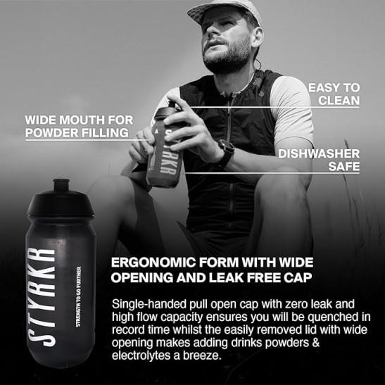 STYRKR Sports Water Bottle 500mll Cycling Water Bottle in Clear Transparent Black - Squeezable, Wide Mouth & Easy Clean - Bike, Sports or Gym