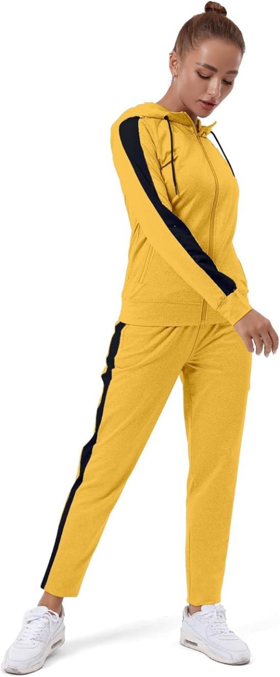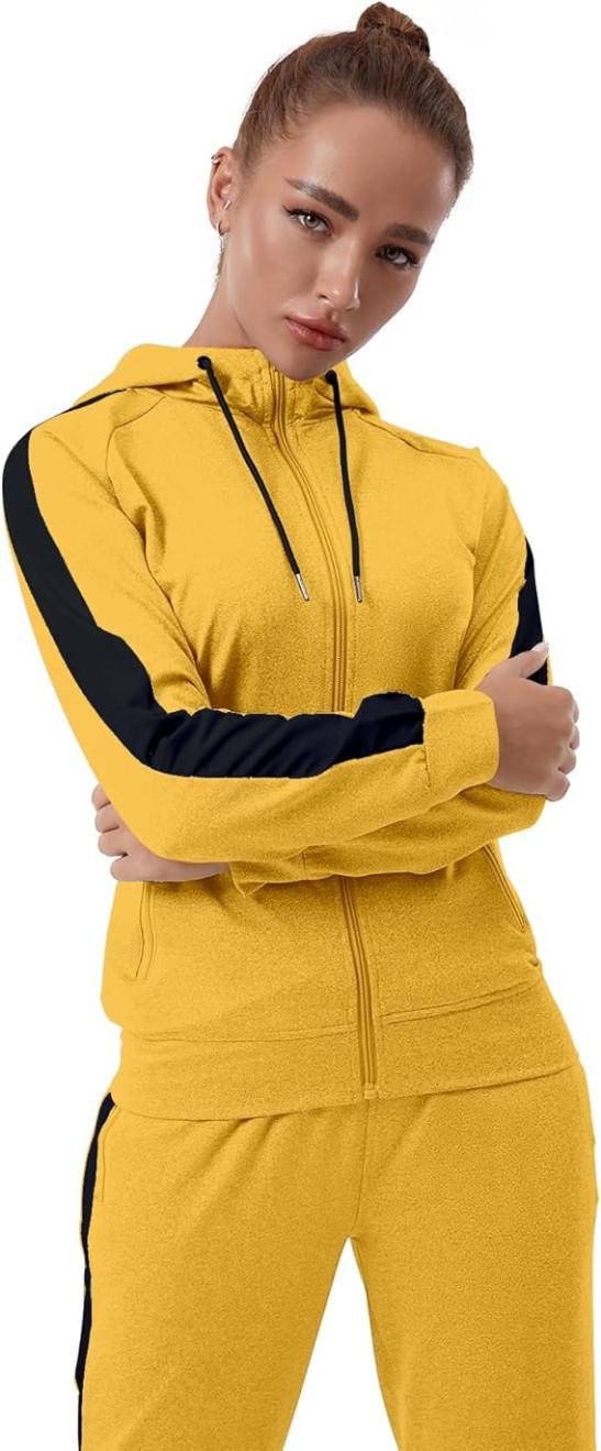 TEZO Womens Full Zip-Up Hoodie Tracksuit Set Long Sleeve Casual Jogging Suits Workout Gym 2 Piece Outfits with Pockets
