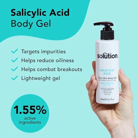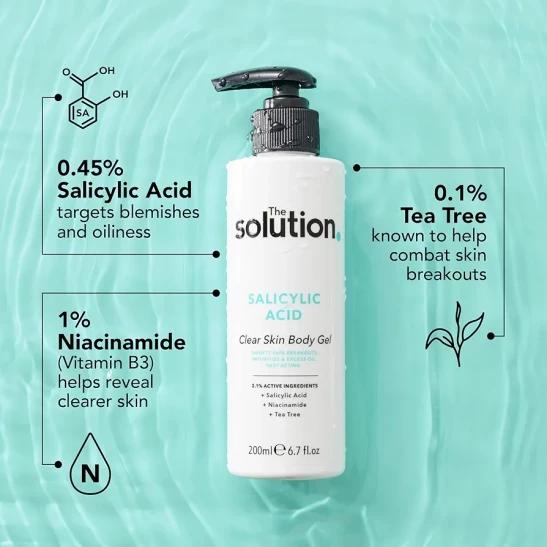 The Solution Salicylic Acid Clear Skin Body Gel (200ml) Back Acne Treatment with Tea Tree, Vegan Salicylic Acid Serum & Pore Minimiser, Cruelty Free Salicylic Acid Gel Lotion Body Care