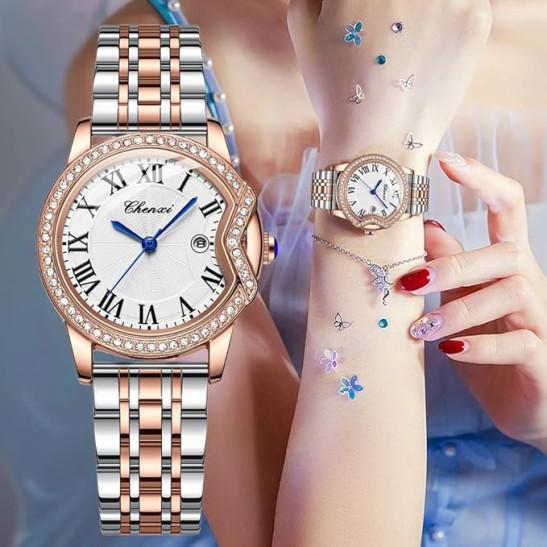 Tiong Women's Quartz Watch with Steel Band, Lady's Lightweight Arabic Numeral Dial Watch,Classic Colors Women's Quartz Watch Gift