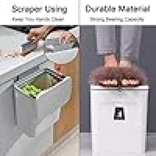 Tiyafuro 2.4 Gallon Kitchen Compost Bin for Counter Top or Under Sink, Hanging Small Trash Can with Lid for Cupboard/Bathroom/Bedroom/Office/Camping, Mountable Indoor Compost Bucket, Gray