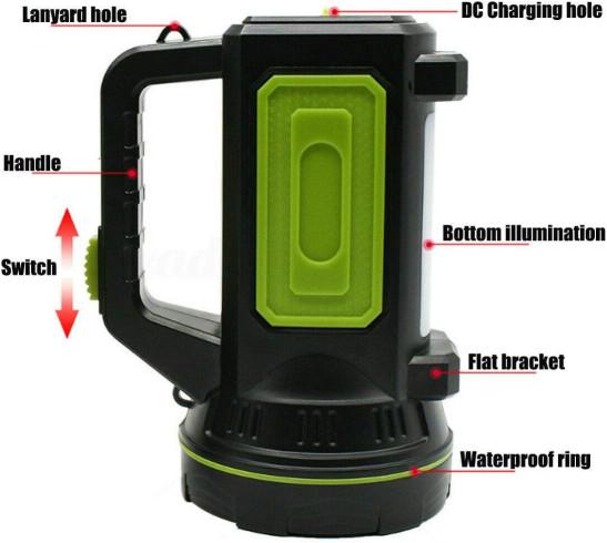 Torch Large Torch Flashlight LED Searchlight 2 Modes 1500LM Light Handheld Lamp White Light Rechargeable Led Searchlight Lantern Outdoor Emergency Flashlight Camping Work Light