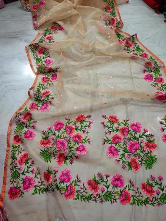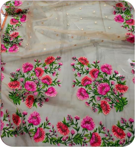 Traditional Muslin Floral Embroidery Women Sari Blouse Indian Saree 938h