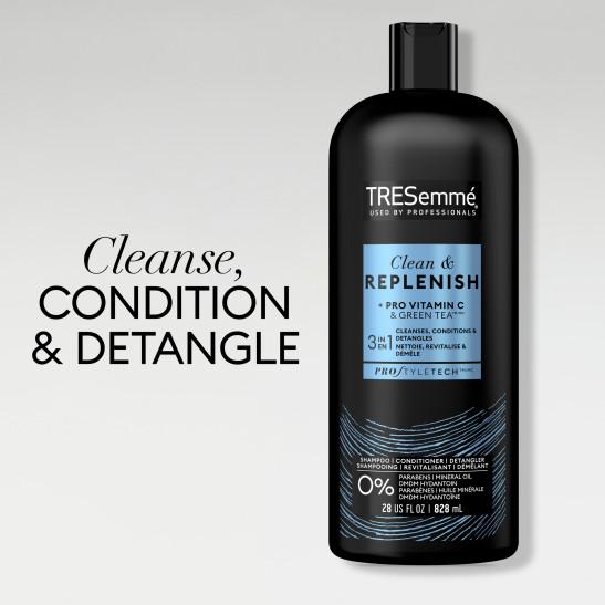 TRESemmé 3-in-1 Shampoo, Conditioner, & Detangler Clean & Replenish Pack of 3 to Cleanse, Condition, & Detangle, with Pro Vitamin C & Green Tea, 28 oz