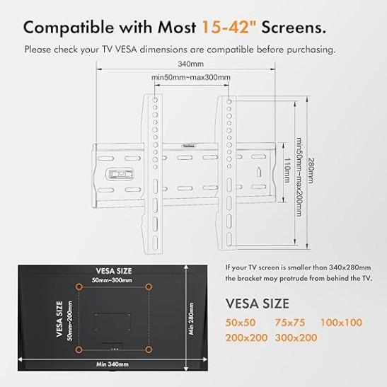 TV Wall Bracket for 15-42" Screens, Ultra-Slim VonHaus TV Bracket with 40kg Capacity, Max VESA: 300x200m