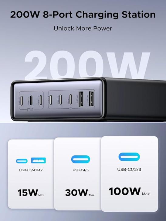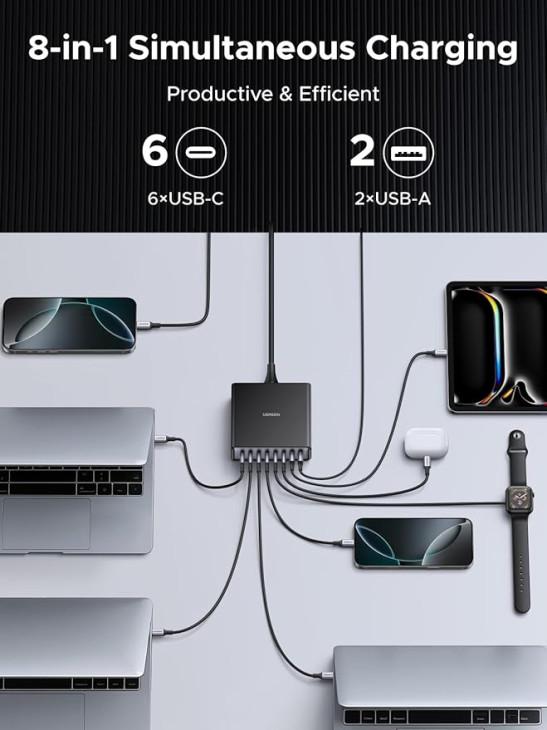 UGREEN 200W USB C Charger 8-Port GaN Desktop Charger Fast Charging Station Block PD 100W Laptop Charger