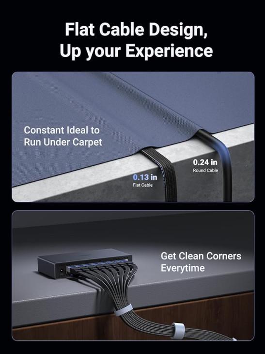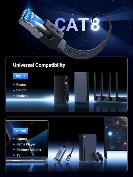 UGREEN Ethernet Cable 10M, Cat 8 Internet Cable Flat High-Speed 40Gbps 2000Mhz Network Cable