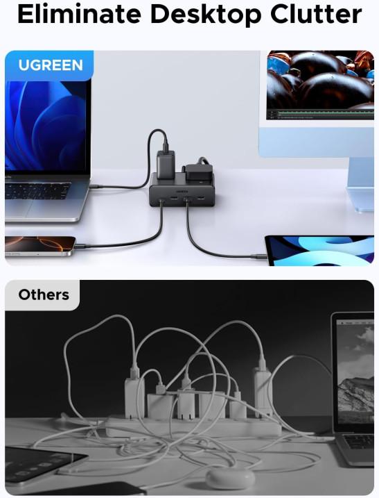 UGREEN Extension Lead with 4 USB Slots, 2 Way 2990W Max Multiple Plug