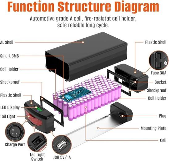 UPP 48V 27Ah Ebike Battery with Rear Rack- Bike Battery