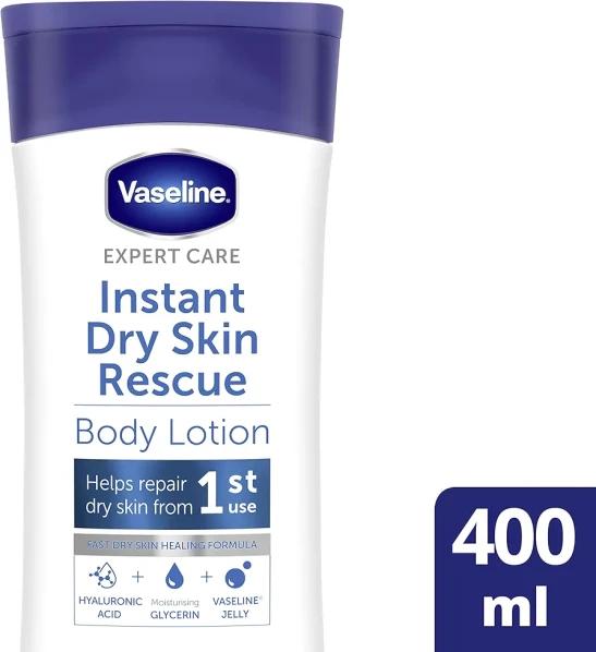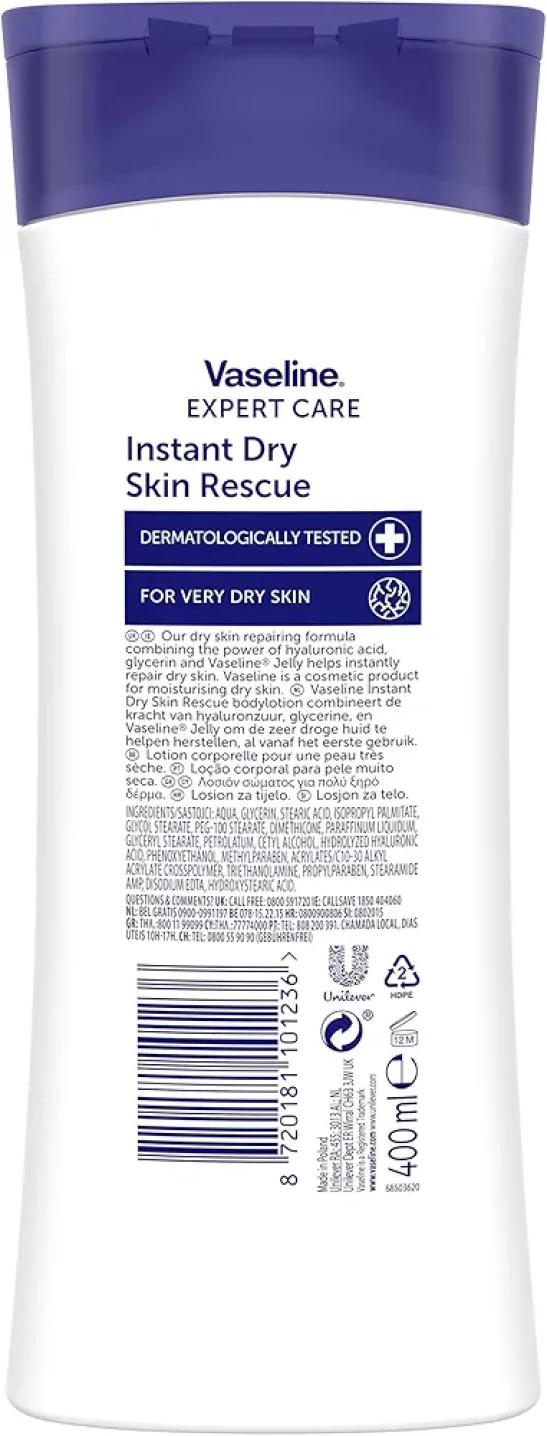 Vaseline Expert Care Instant Dry Skin Rescue Body Lotion dermatologically tested moisturiser for very dry skin 400 ml (Pack of 2)