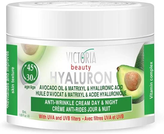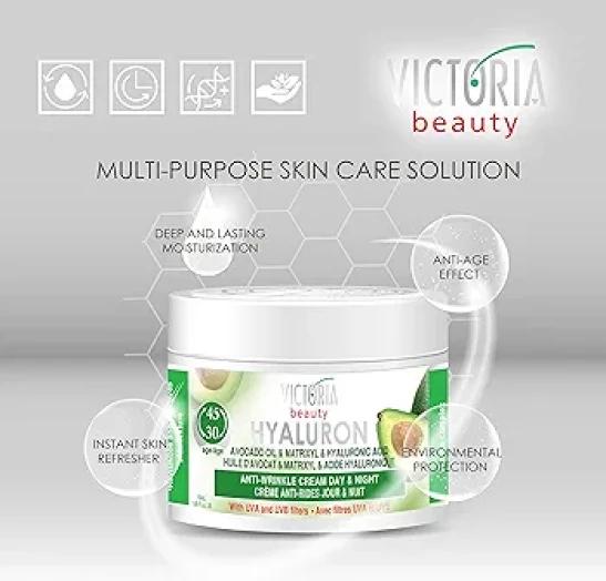 Victoria Beauty Face Cream with Hyaluronic Acid and Avocado Oil - Hydrating, Tightening and Firming Anti Wrinkle Day & Night Cream With UV Filters - 50ml