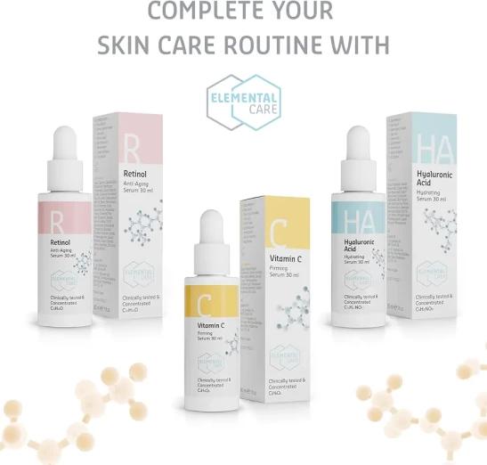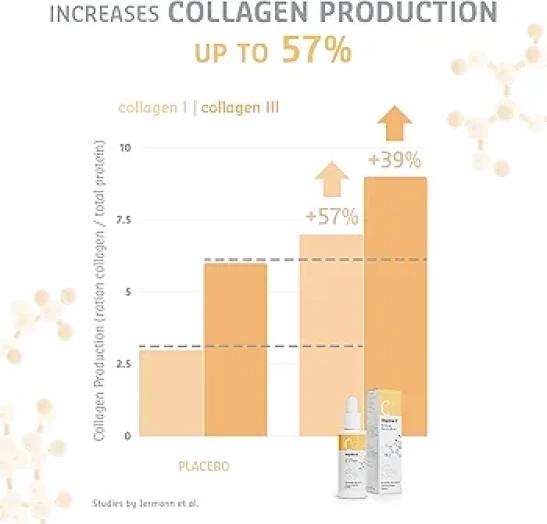 Vitamin C Serum 30ml, Face Serum 57% More Collagen Production 25% Reduction Age Spots in 3 Months - Facial Serum for Firm Glowing and Brightening Skin - Elemental Care