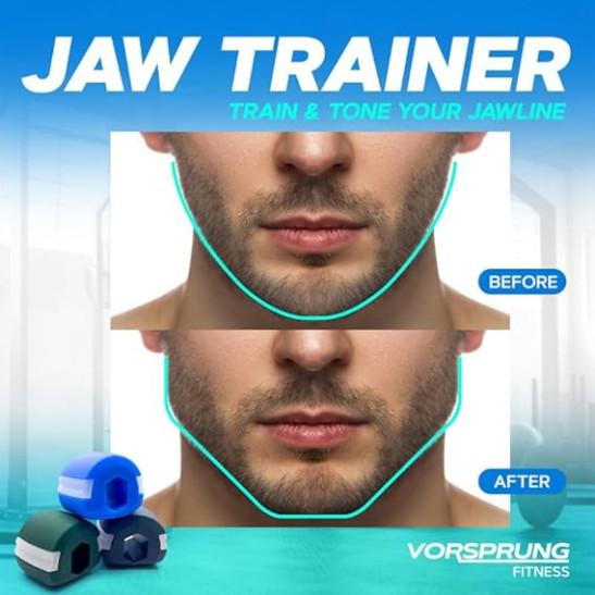 VORSPRUNG®Jaw Exerciser, Trainer to Achieve a Sharper Jawline with Three Levels of Resistance - Jaw Trainer for an Enhanced Facial Definition - Pack of 3 with FREE Biting Strips & 3 Necklaces