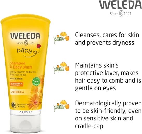 Weleda Baby Shampoo & Body Wash w. Calendula, Sensitive Kids Shampoo & Baby Bath Wash, Baby Face Wash & baby Shower Cream in One, by Weleda Baby Skincare - 200ml