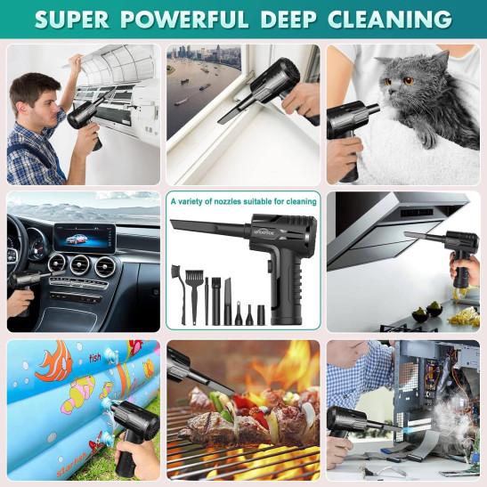 WHATOOK Compressed Air Cleaner for PC - Electric Air Duster, 10000RPM Super High Power Keyboard Cleaner with 3-Gear Speed, Led-Light, Rechargeable Compressed Air Blower for Laptop, Car & Home Cleaning