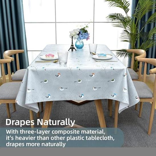 Wipeable PVC Plastic Waterproof Rectangular Plenmor Table Cover Protector for Kitchen Picnic Outdoor Indoor (137x185 cm)