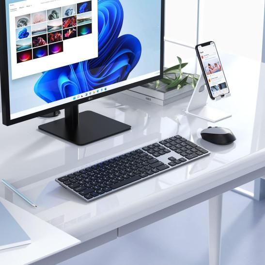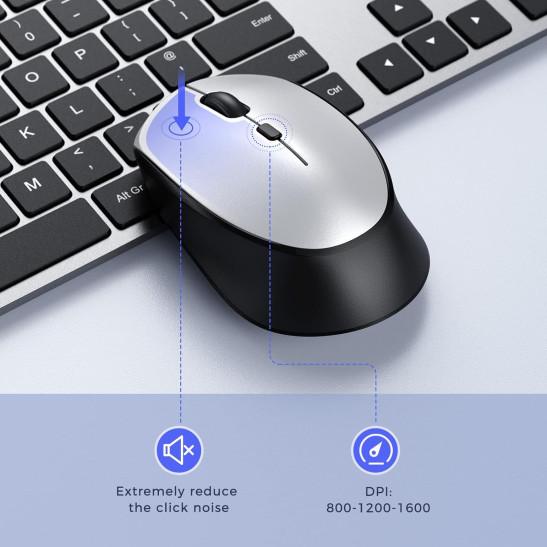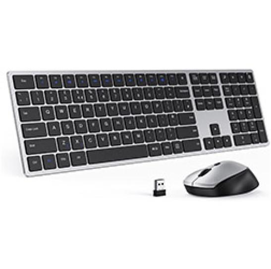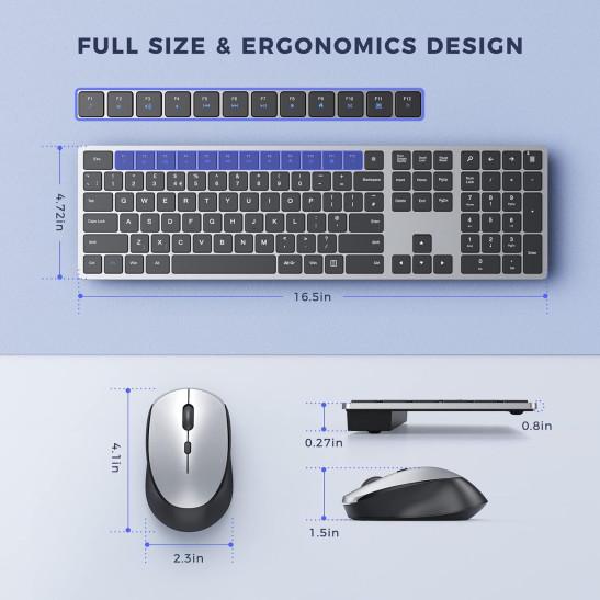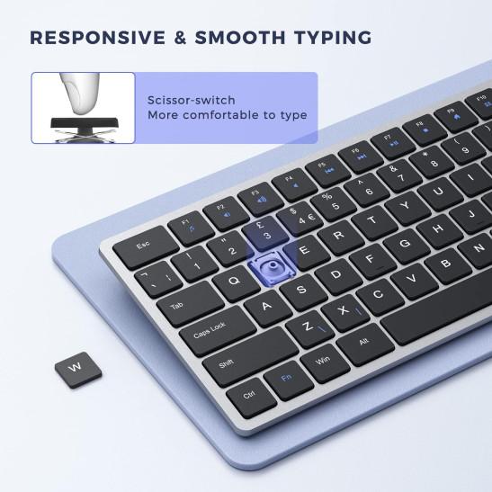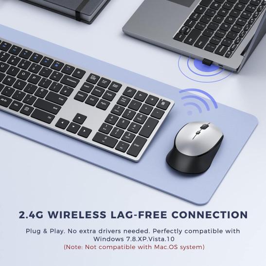 Wireless Keyboard and Mouse Combo,seenda Slim Thin Full Size Wireless Keyboard & Mouse Set 2.4G Ergonomic Cordless Keyboard and Silent Mice for Windows Desktop,PC,Laptop,QWERTY UK Layout,Black Silver