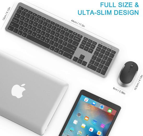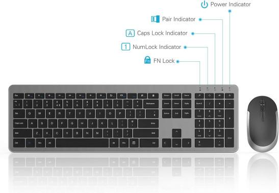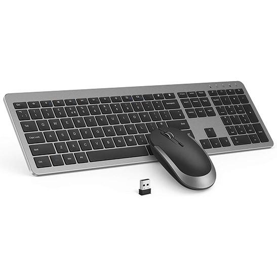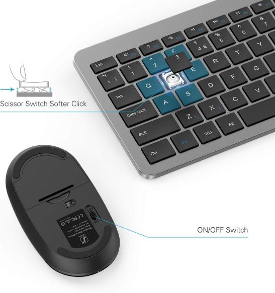Wireless Keyboard & Mouse Sets - Slim Thin Wireless Keyboards and Mouse Combo Full Size Keyboard with Numeric Keypad Adjustable DPI Wireless Mouse - Grey & Black