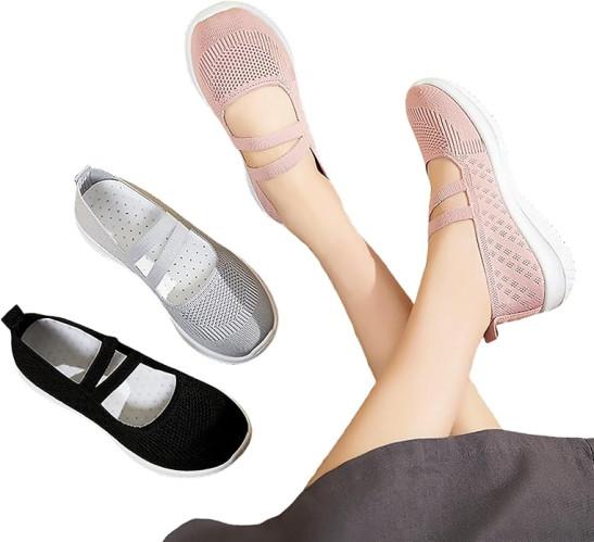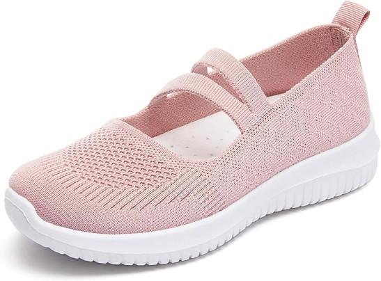 Women Mary Jane Walking Shoes Comfortable Knit Flats Slip on Dress Shoes for Women Casual Nurse Flats Diabetic Shoes with Arch Support