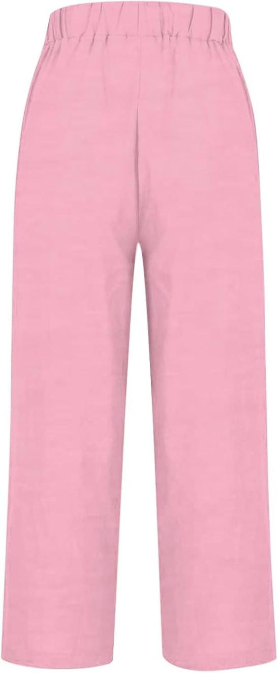 Women Solid Straight Solid Elastic Pants Long Drawstring Linen Women Waist Cotton Casual Pants Leggings with Pockets for Women Plus Size