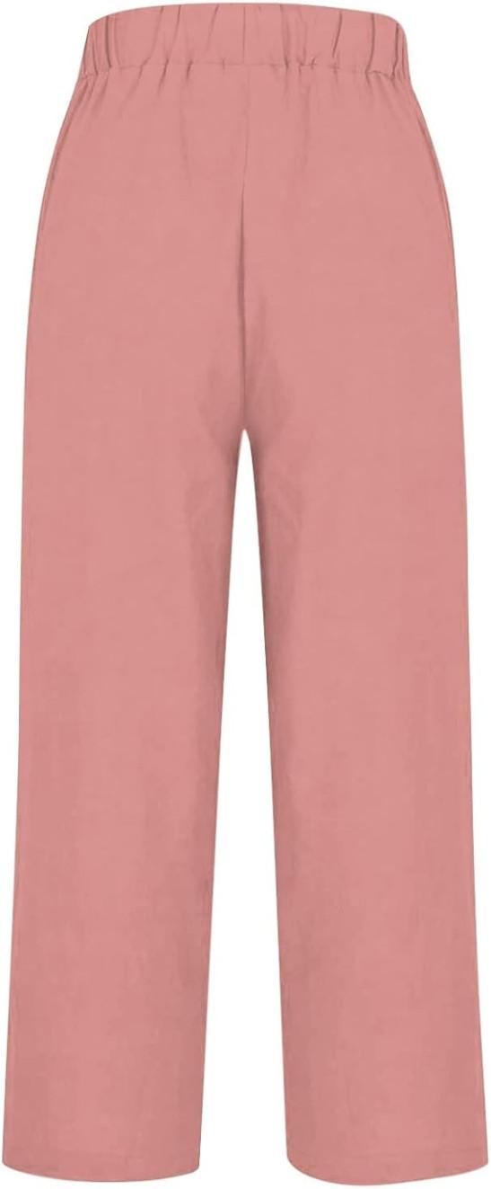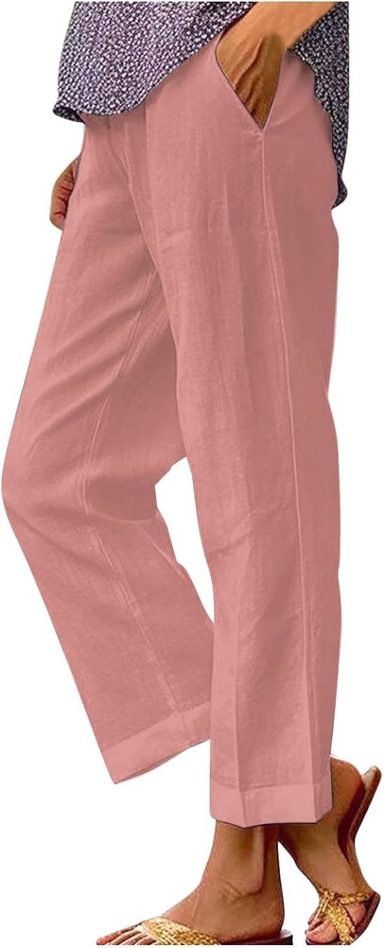 Women Solid Straight Solid Elastic Pants Long Drawstring Linen Women Waist Cotton Casual Pants Leggings with Pockets for Women Plus Size